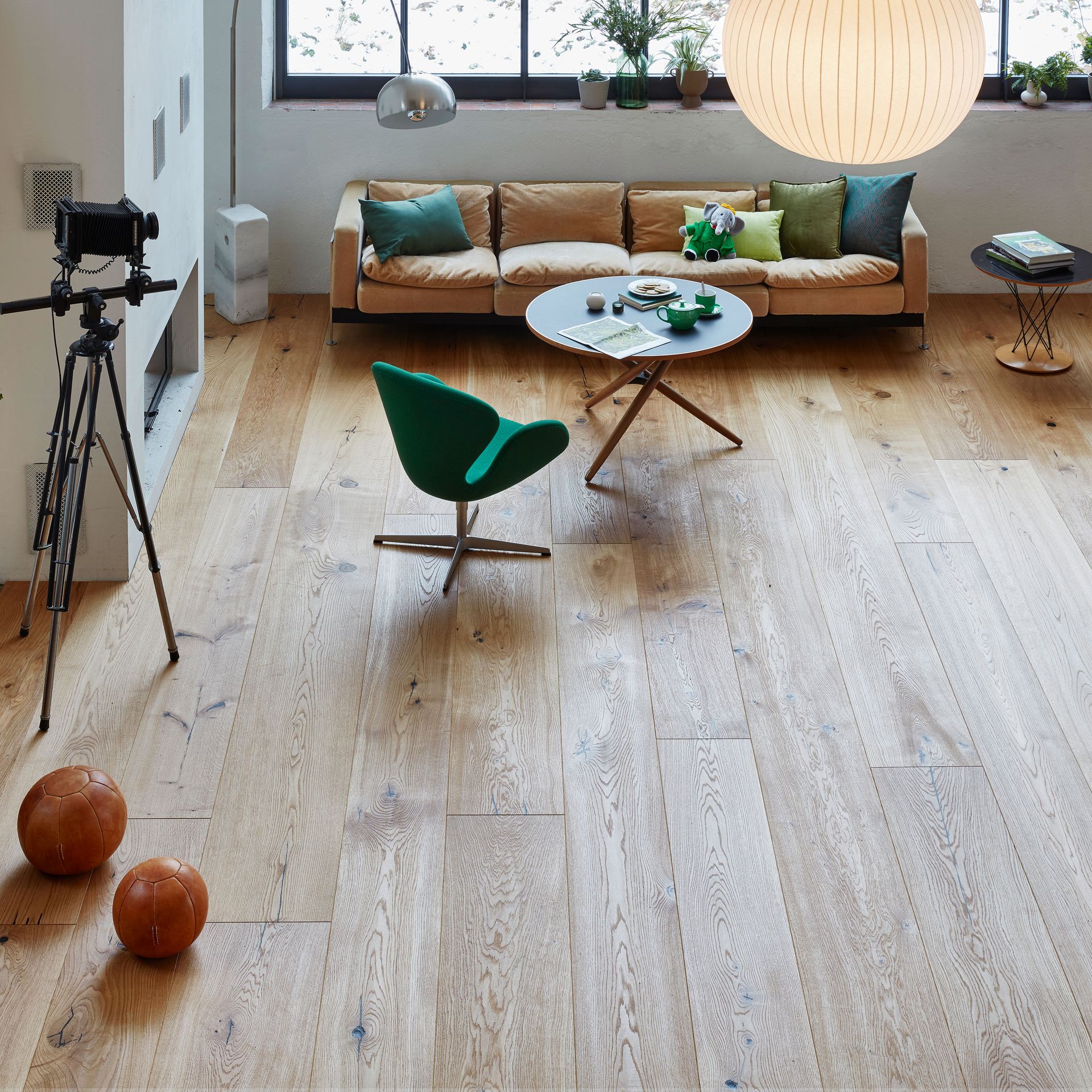Die sehr beliebten Eichenböden sind durch die enorme Härte des Holzes besonders langlebig und halten einiges aus. Spielende Kinder, Haustiere und schmutzige Schuhe – alles kein Problem für diese Dauerbrenner-Böden! Einfach feucht wischen oder kehren – und der Boden glänzt in unverminderter Schönheit! Der Vorteil der Reliefoptik von gehobelten oder gealterten Dielen ist die Strapazierfähigkeit, da sich Kratzer oder sonstige kleine Gebrauchsspuren in die bestehende Gestaltung integrieren – und diese Böden auch nach vielen Jahren noch wie neu erscheinen.